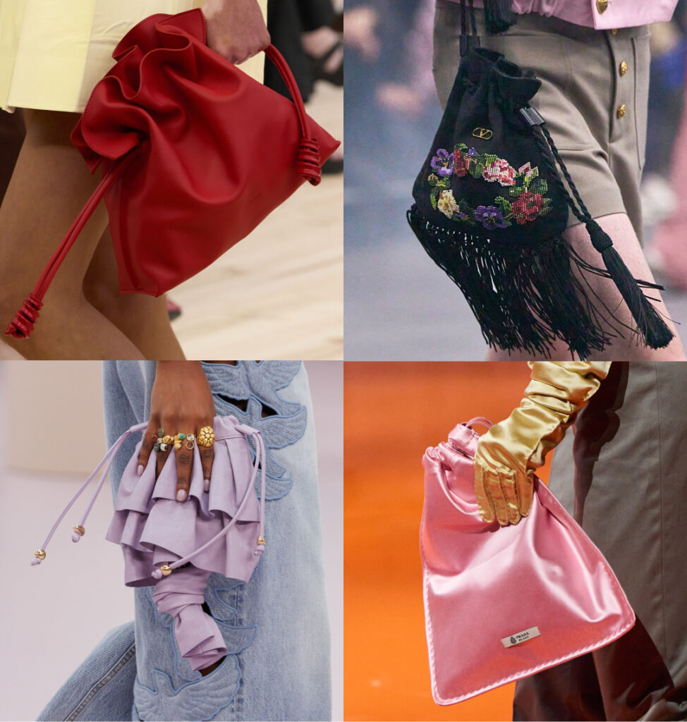 У 2026 році мішечок отримує додаткові декоративні рівні: вишивку, бахрому, мереживні елементи або мініатюрні рюші. Це універсальний формат, який додає образу м’якості та артистичності.