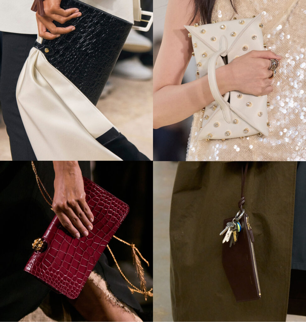 Геометрія конверта отримує нову сучасну енергію. У 2026 році цей формат стає структурнішим, має чіткі краї, декоративні елементи й продумані деталі. Його естетика побудована на мінімальній формі, яка має максимальний ефект.